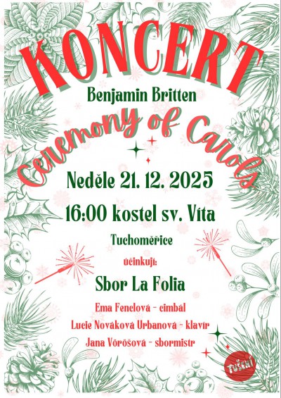 V neděli 21. prosince ve 16.00 hod. zve Sbor La Folia na vánoční koncert “Ceremony of carols” od Benjamina Brittena v kostele v Tuchoměřicích.